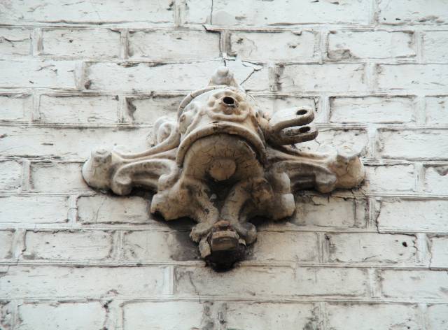 Facaden er moderat dekoreret – her fra facaden til Torvegade