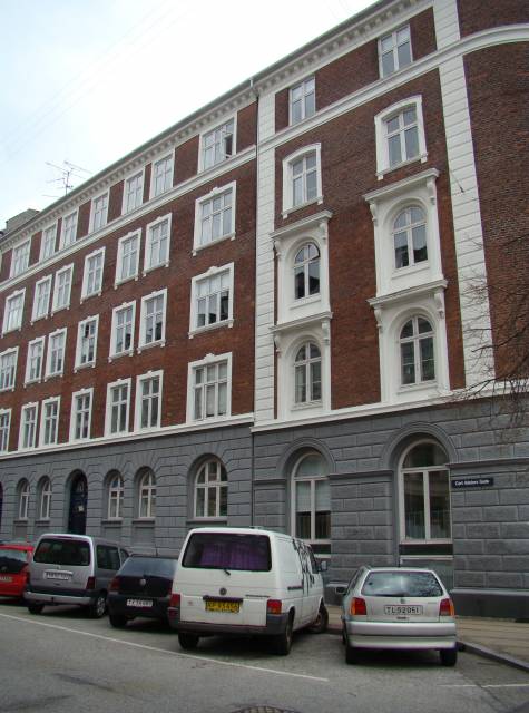 Cort Adelers Gade 9 / Havnegade 43 er fra 1872 og står som dengang opført med kælder samt fem etager. Arkitektens navn kendes ikke, men bygherren var malermester E. V. Hansen.